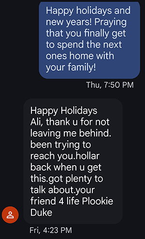 All texts/emails are reviewed by Ralph's family & forwarded to him directly. Include your email address if you wish to be added to his contact list. You can also send postal mail to him directly.